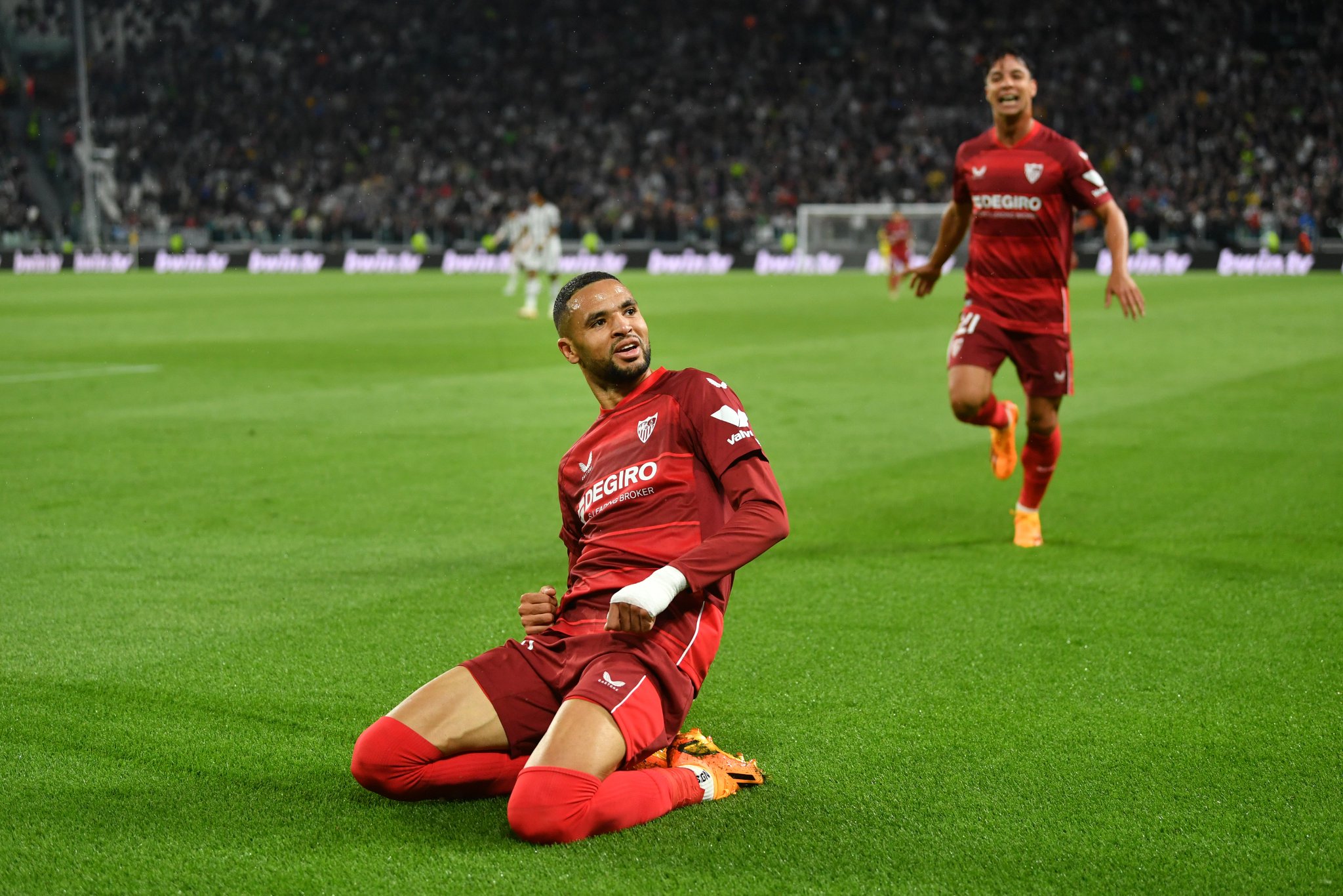 وتمكن النصيري من إحراز هدف التقدم للفريق الأندلسي في الدقيقة الـ 26 من تسديدة محكمة إثر تمريرة الدولي الأرجنتيني لوكاس أوكامبوس، وهو الهدف الذي حافظ عليه رفاق النصيري طيلة أطوار المباراة في وقتها الرسمي، حيث عجز نجوم السيدة العجوز عن هز شباك الفريق أمام التألق الكبير للحارس المغربي ياسين بونو الذي أبعد أكثر من كرة وصلابة الدفاع، قبل أن تهتز شباكه في الدقيقة الأخيرة من الوقت بدل الضائع لينتهي اللقاء بالتعادل الإجابي هدف لمثله، ويتأجل الحسم إلى لقاء العودة في إسبانيا.