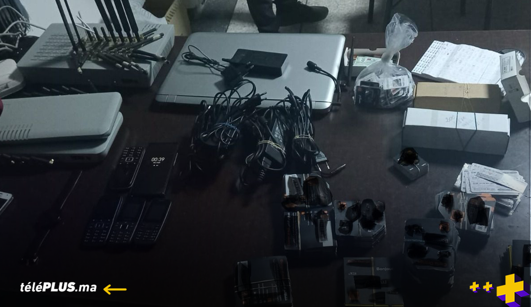 كما أسفرت عمليات التفتيش المنجزة في هذه القضية عن حجز مجموعة من بطائق التعبئة والشرائح الهاتفية الخاصة بمزودي خدمات هاتفية وطنية وحاسوب محمول، علاوة على هواتف نقالة وأجهزة إلكترونية ودعامات معلوماتية تستعمل في هذا النشاط الإجرامي.