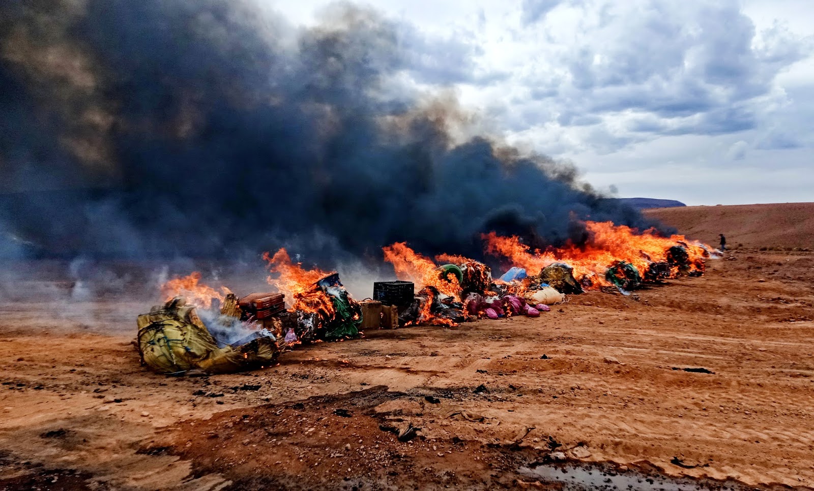 قامت السلطات المختصة، أمس الأربعاء بضواحي الداخلة، بحرق وإتلاف ما مجموعه ثلاثة أطنان و442 كيلو غرام من مخدر الشيرا وكميات مهمة من المواد المحظورة والمهربة.