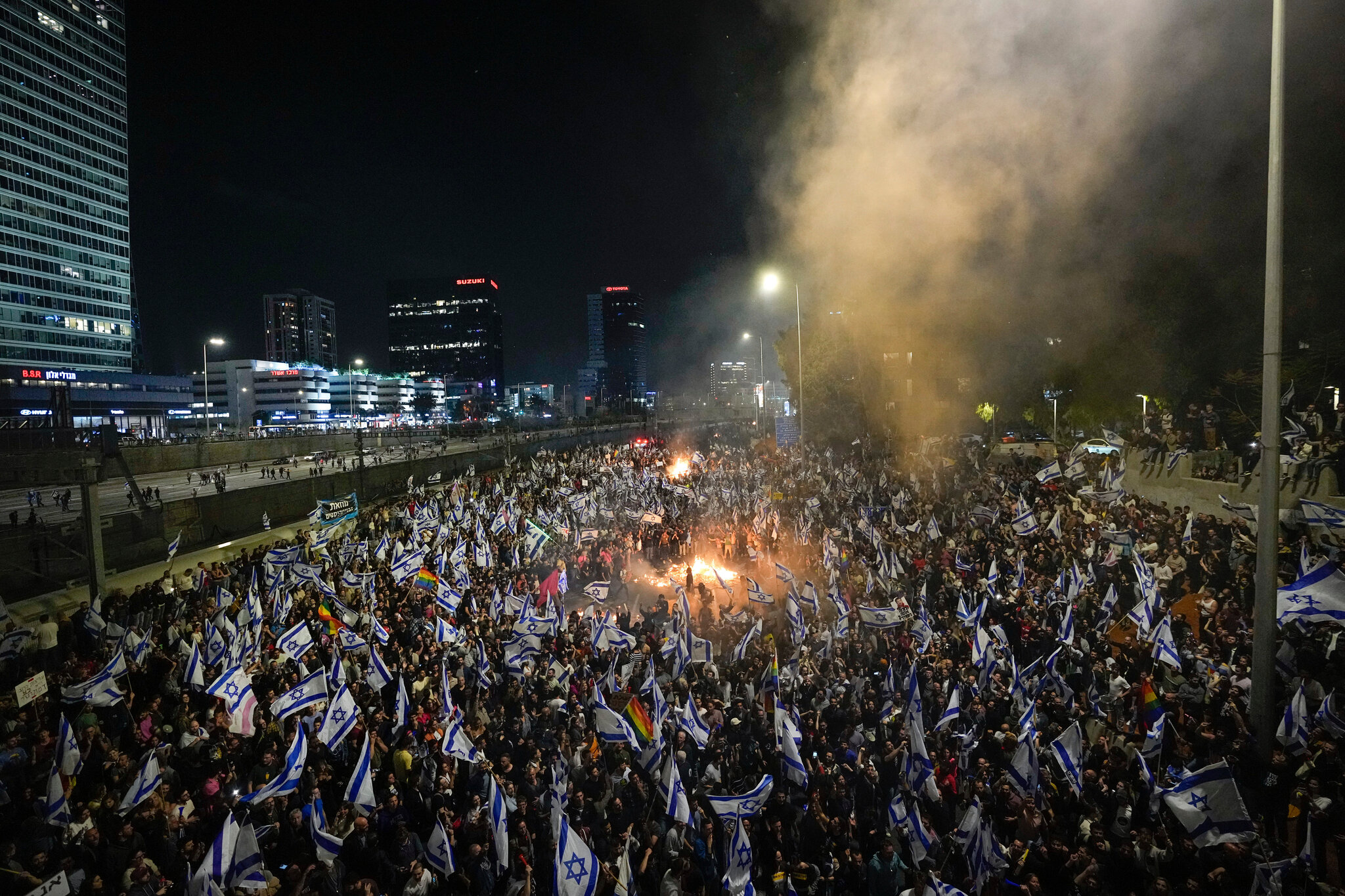 وأدخل الإصلاح، الذي يقوده نتنياهو، الذي يحاكم بتهمة الفساد، وحلفاؤه في أكثر حكومة يمينية متطرفة في إسرائيل على الإطلاق، البلاد في واحدة من أسوأ أزماتها الداخلية. وامتدت الاحتجاجات المكثفة والمتواصلة إلى جميع قطاعات المجتمع تقريب ا، بما في ذلك الجيش، حيث خرج جنود الاحتياط علن ا ليقولوا إنهم لن يخدموا بلد ا يتجه نحو الاستبداد.