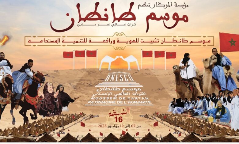 وأوضح بنسعيد، في كلمة خلال الافتتاح الرسمي للدورة الـ16 لموسم طانطان الذي تنظمه مؤسسة «ألموكار» تحت الرعاية السامية للملك محمد السادس، إلى غاية 12 يوليوز الجاري تحت شعار «موسم طانطان.. تثبيت للهوية ورافعة للتنمية المستدامة»، أن هذا الحدث الكبير يشكل فرصة لتسليط الضوء على غنى وتنوع التراث الثقافي غير المادي حيث أن موسم طانطان أعلن خلال سنة 2005 من روائع التراث الشفهي اللامادي للإنسانية، وخلال سنة 2008 تم إدراجه ضمن القائمة التمثيلية للتراث غير المادي العالمي لليونيسكو.