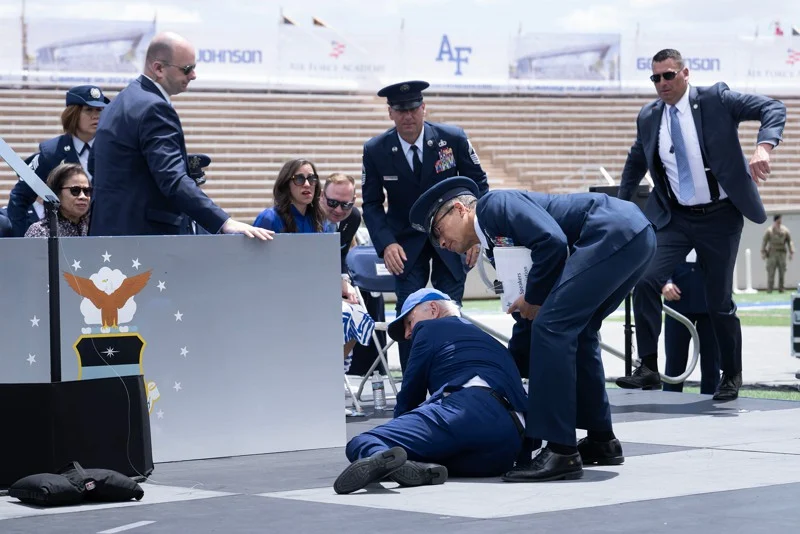 تعثّر الرئيس الأمريكي جو بايدن وسقط أرضا، اليوم الخميس فاتح يونيو 2023، إثر خطاب ألقاه على منصة في حفل تخرّج في أكاديمية سلاح الجو في كولورادو، من دون أن يصاب على ما يبدو بأي أذى.