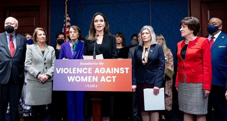 أجهشت النجمة العالمية، أنجلينا جولي ، بالبكاء، وهي تلقي كلمة لها أمام مجلس الشيوخ الأمريكي “الكونغرس” من أجل إقرار قانون جديد في الولايات المتحدة الأمريكية لمكافحة العنف ضد المرأة.