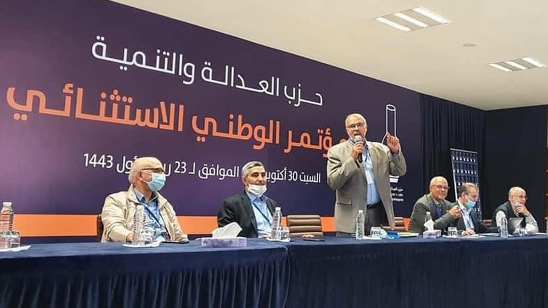 Peut être une image de ‎1 personne, position debout et ‎texte qui dit ’‎حزب العدالة والتنمية المؤتمر الوطني الاستثنائي السبت أكتوبر 2021 الموافق 3ربيعالأول 1443‎’‎‎