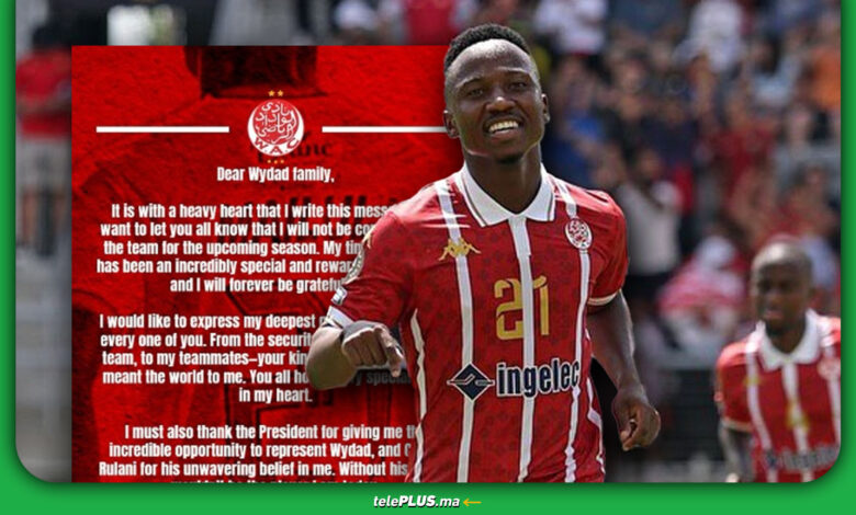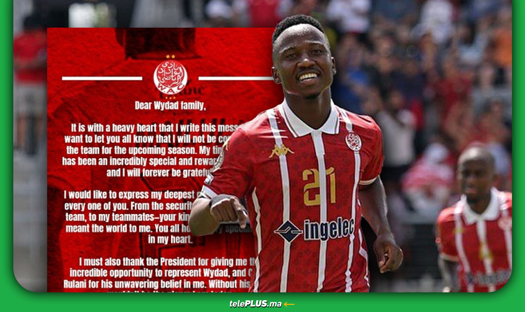أعلن اللاعب الجنوب إفريقي كاسيوس ميلولا، في رسالة وداع مؤثرة، نهاية مشواره مع نادي الوداد الرياضي، مؤكدًا عدم استمراره مع الفريق خلال الموسم المقبل.