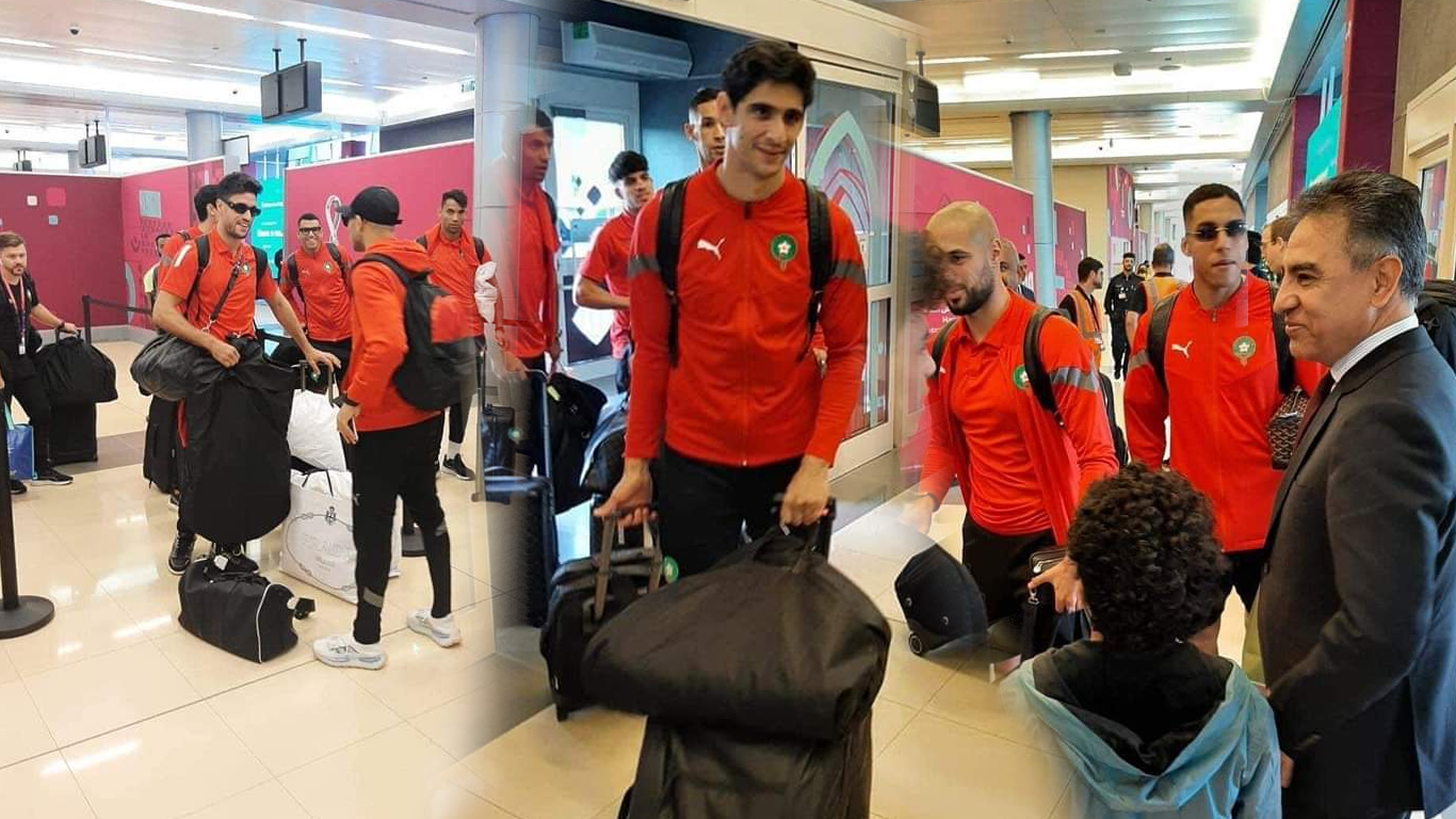 بعثة المنتخب المغربي تحل بمطار الدوحة استعدادا للمغادرة في اتجاه الرباط