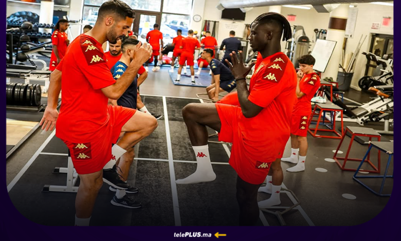 وخاض الفريق الأحمر أولى حصصه التدريبية مساء الأربعاء، داخل قاعة رياضية بأمريكا، وخصصها الطاقم التقني لتمارين خفيفة لإزالة العياء بعد السفر الطويل.