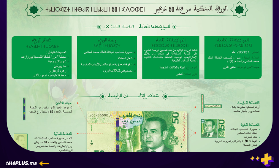 وأضاف أن جميع مراحل تصميم وإنتاج هذه الورقة النقدية الجديدة من فئة 50 درهما قد تم إنجازها من قبل الكفاءات المغربية التي تزخر بها دار السكة، على غرار الأوراق النقدية الجديدة من فئة 100 درهم و 200 درهم.