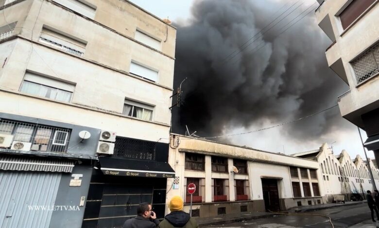 حريق ضخم يأتي على مستودع أدوية بدرب عمر وسط استنفار أمني بالدار البيضاء