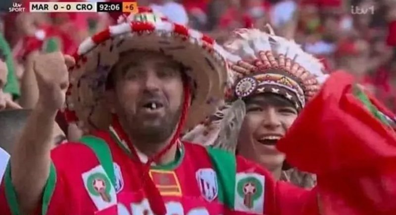 وظهر المشجع وهو يرفع العلم المغربي ويهتف بالتشجيعات في المدرجات، في لحظة تلقائية التقطتها عدسات الكاميرا،ليسقط الرجل الخمسيني في شباك المتنمرين وليتم تداول تلك اللقطة بشكل واسع والسخرية من شكل أسنانة،
