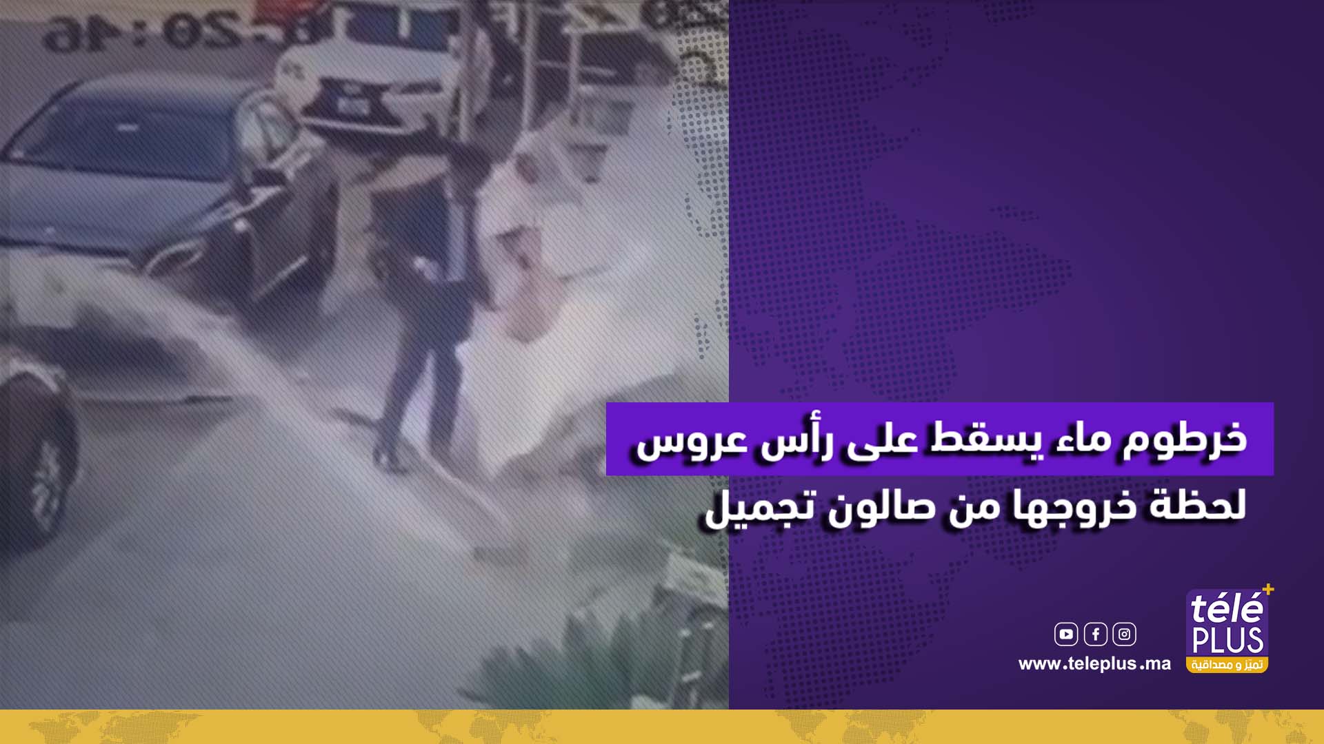 خرطوم ماء يسقط على رأس عروس لحظة خروجها من صالون تجميل