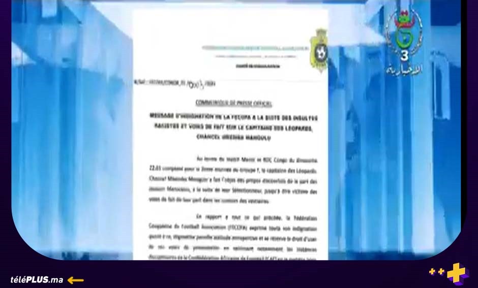 بيان الاتحاد الكونغولي لم يتضمن أبدًا مصطلح “العنصرية” وأفاد بأن قائد منتخب الكونغو الديمقراطية، تشانسيل مبيمبا، تعرض لـ”عبارات غير لائقة من لاعبي المنتخب المغربي ومدربهم” بعد المباراة الأخيرة.