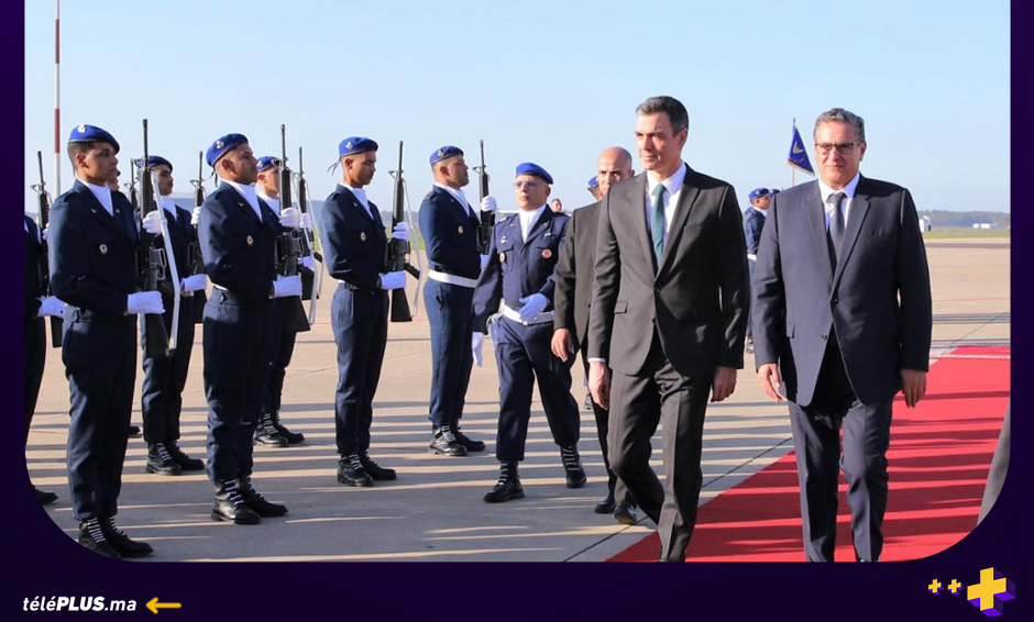 عزيز أخنوش يستقبل رئيس الحكومة الإسبانية بيدرو سانشيز بمطار الرباط
