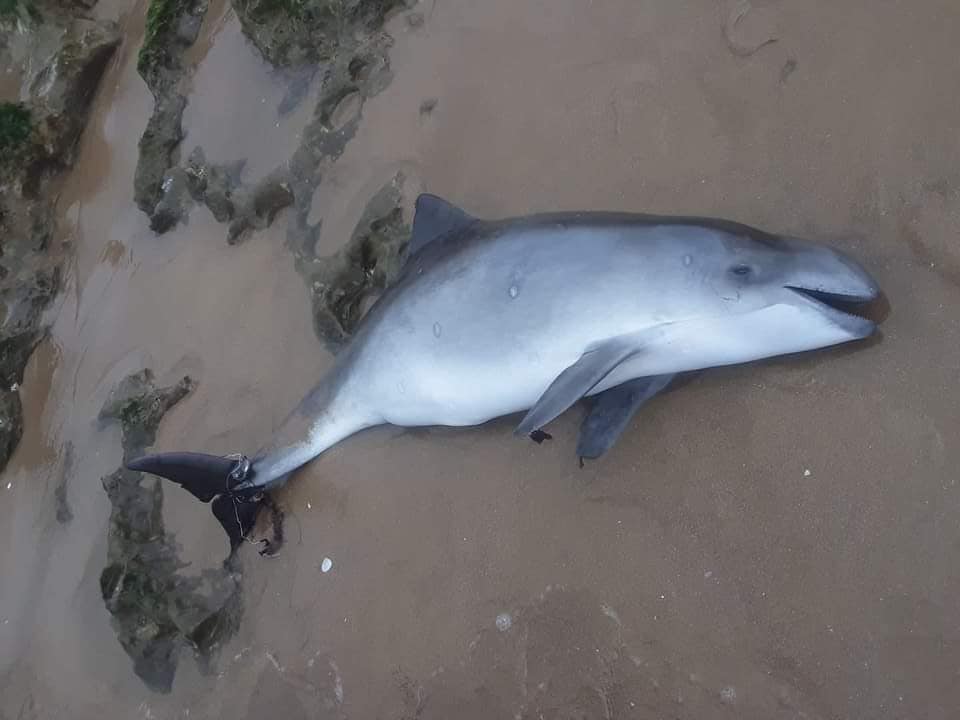 وذكرت مصادر متطابقة أن الدلفين النافق، والذي يبلغ طوله خمسة أمتار بلونيه الأبيض والأسود، عثر عليه من قبل أهالي المنطقة بعد أن لفظته أمواج البجر، وقد ربط ذيله بخيط على مستوى الزعنفة الذيليلة.