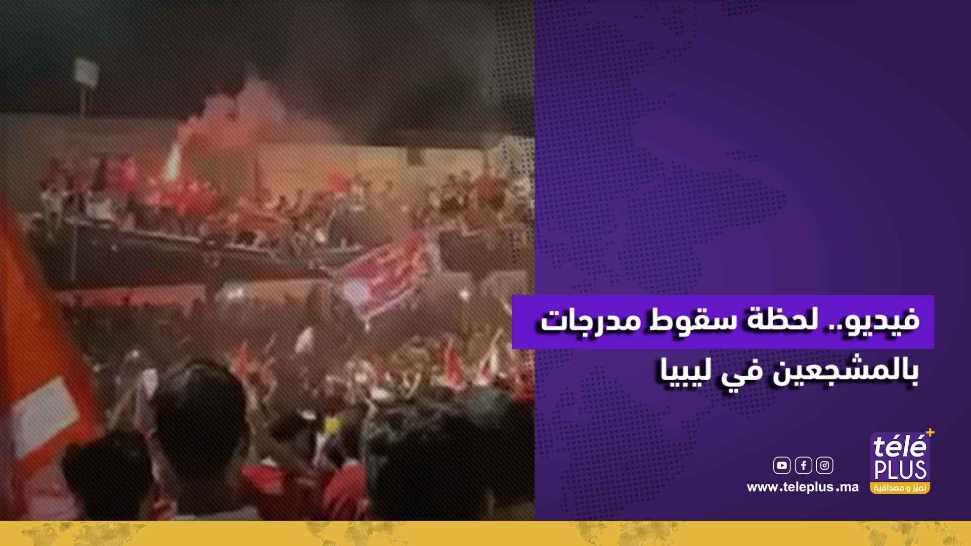 فيديو.. لحظة سقوط مدرجات بالمشجعين في ليبيا