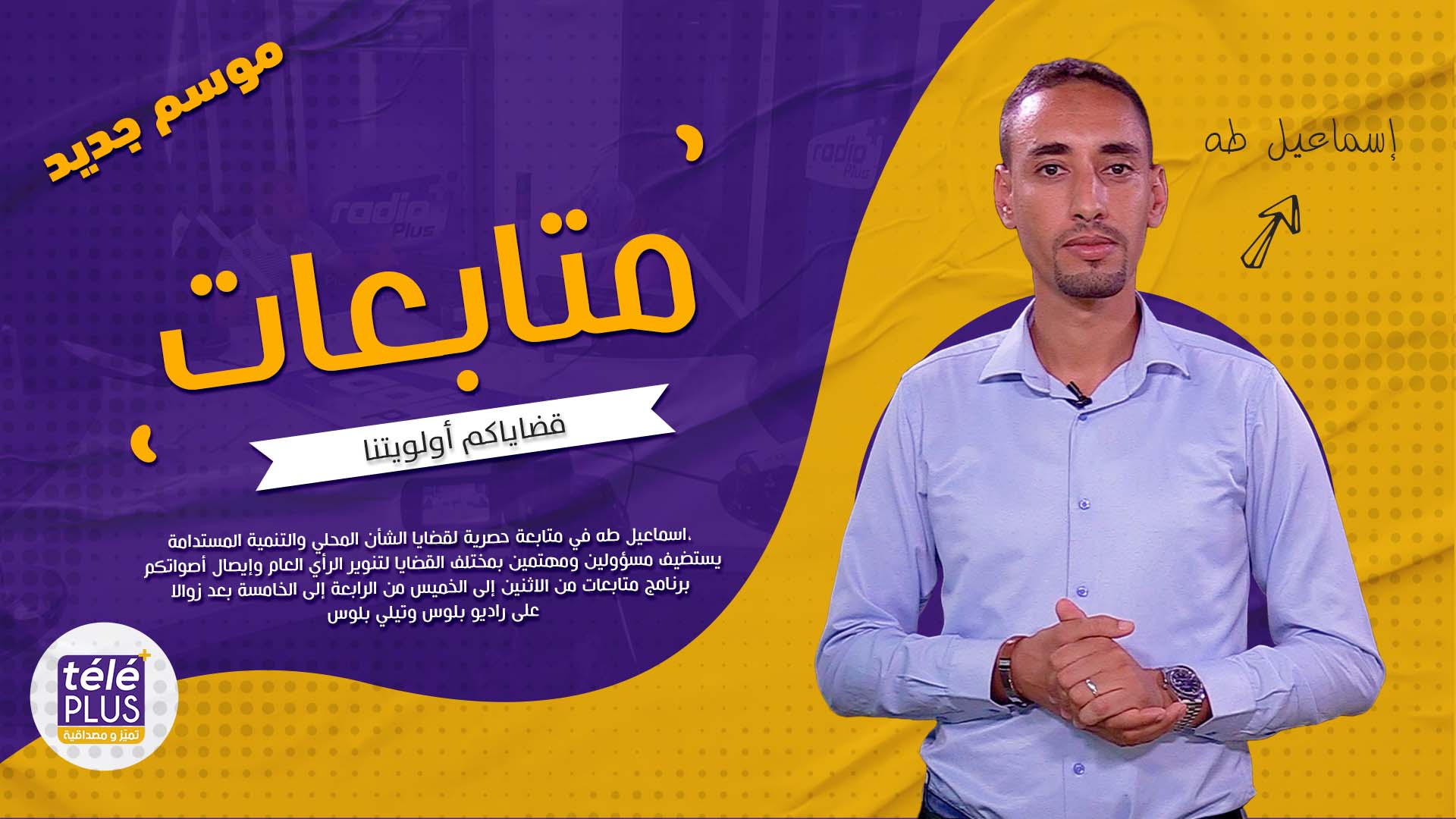 اسماعيل طه يستضيف مسئولين ومنتخبين وفاعلين جمعويين في نقاش مستفيض حول قضايا الوطن في متابعة حصرية لقضايا الشأن المحلي والتنمية المستدامة. “متابعات” بوابتكم للفهم والنقاش من الإثنين إلى الخميس على “راديو بلوس” و”تيلي بلوس”