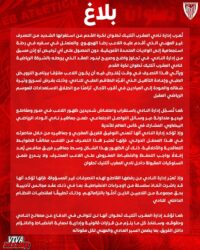 وأضاف البلاغ أن هذه التصرفات تُعد إخلالًا بالتزاماته التعاقدية، وستُقابل بإجراءات تأديبية صارمة، وفقًا للنظام الداخلي للنادي، بما في ذلك إحالة الملف على الجهات المختصة.