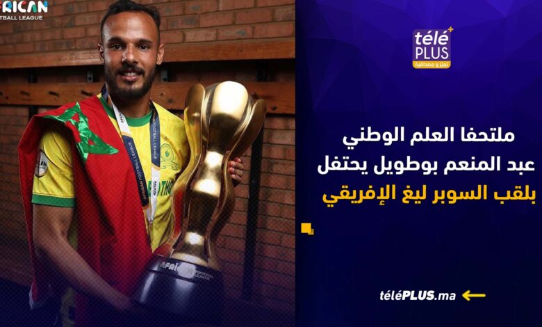 ملتحفا العلم الوطني عبد المنعم بوطويل يحتفل بلقب السوبر ليغ الإفريقي