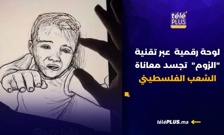لوحة رقمية تجسد معاناة الشعب الفلسطيني وخاصة الأطفال في ظل القصف على قطاع غزة.
